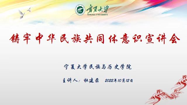 10月12日下午,永利3044noc召开铸牢中华民族共同体意识线上宣讲报告会,由学院院长杜建录主讲,学院党委副书记刘翔未主持,学院全体师生参加。