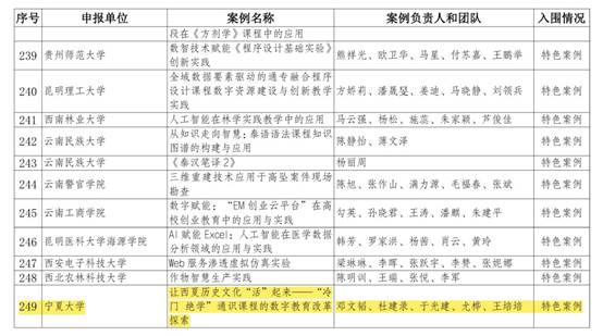 11月26日,由中国教育技术协会组织开展的“‘新质·引领·赋能’首届数字教育示范案例征集活动”公布了首批入选名单,涵盖标杆案例107个、优秀案例181个、特色案例311个。由永利3044noc申报的《让西夏历史文化“活”起来——“冷门绝学”通识课程的数字教育改革探索》成功入选特色案例。